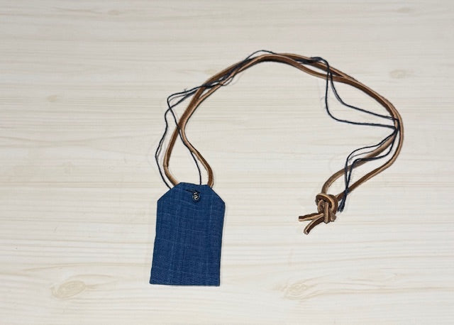 ネックレスに使用した革ひもは、日本製の鹿革です。古来から鹿は神様のお使いと考えられていて、お守りのデザインにも採用されており、香取神宮、鹿島神宮では鹿が飼われています。