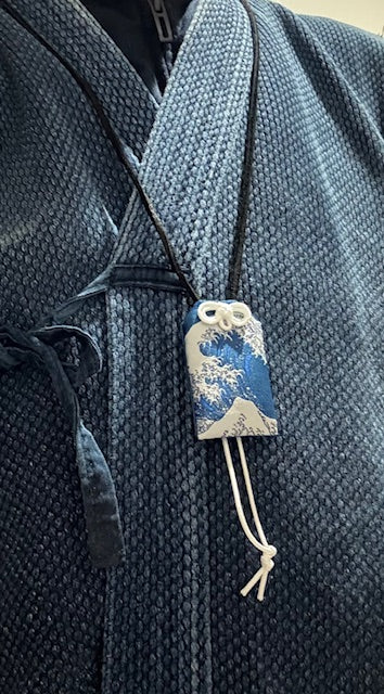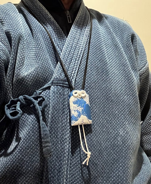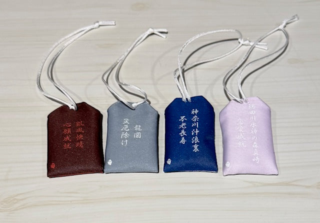 香取神宮一の鳥居、津宮浜鳥居にほど近い㊉剛武館のお守りに誕生石をパワーストーンとして錦袋に納めたネックレスです。