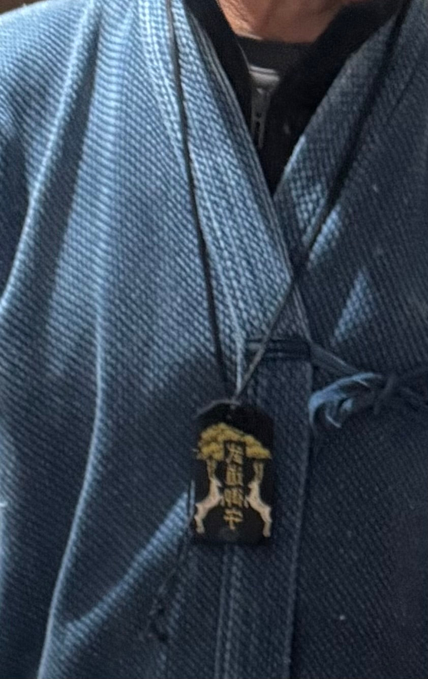 ネックレスに使用した革ひもは、日本製の鹿革です。古来から鹿は神様のお使いと考えられていて、お守りのデザインにも採用されており、香取神宮、鹿島神宮では鹿が飼われています。